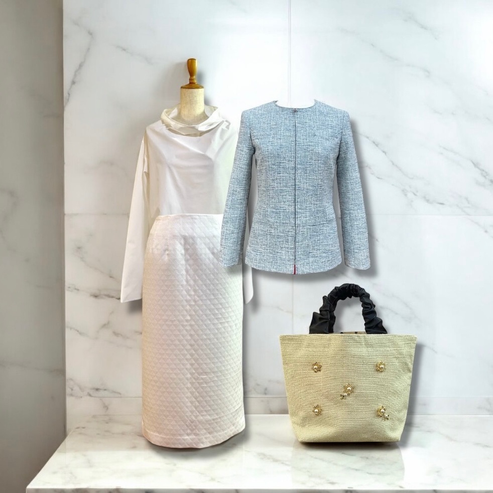 【 春の軽やかさを纏う、上品レイヤードスタイル 】