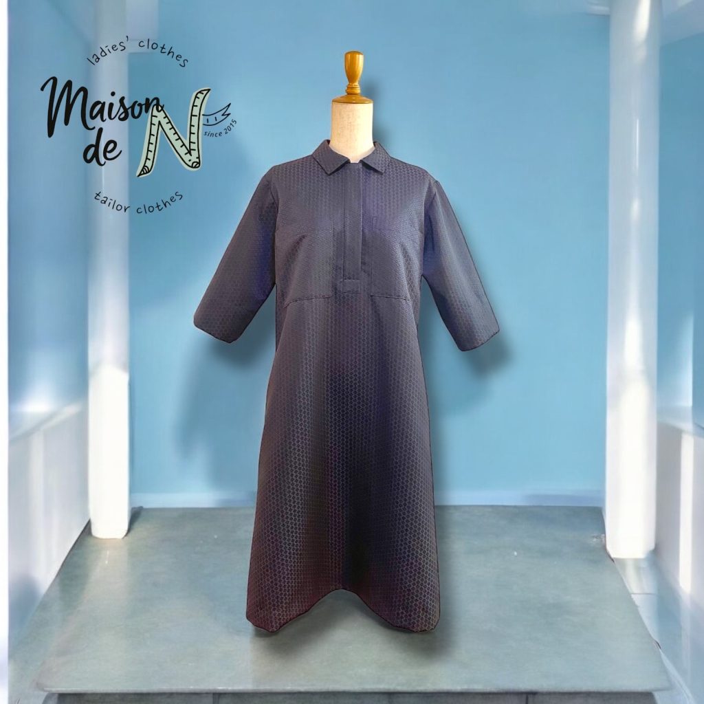 ジャカード生地で仕立てたエレガントなシャツワンピース✨
