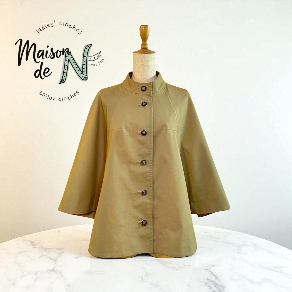 人気のケープデザインを、今回はコットンとポリエステル混合のギャバジン生地でお仕立てしました。