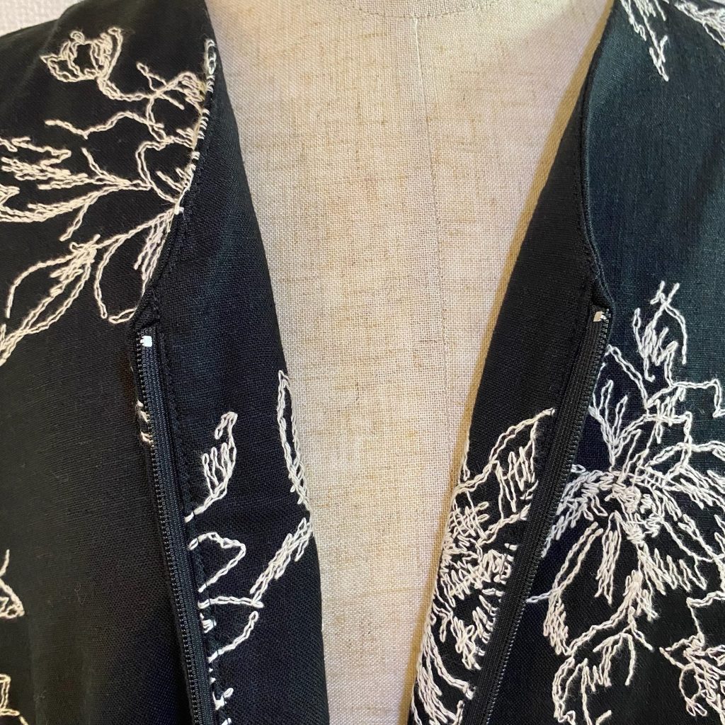 さらにフロントにはオープンファスナーを加え、ワンピースとしても羽織としても楽しめる一着に仕立て直しました。