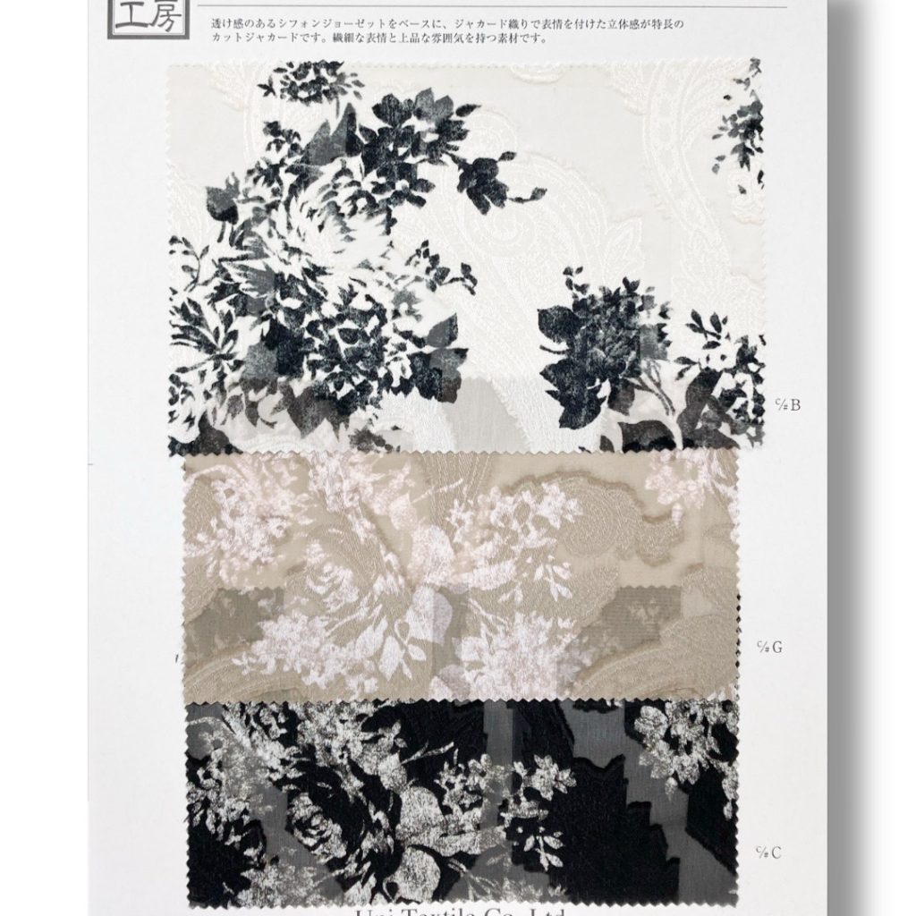 ホワイト×ブラックのサンプルは凛とした美しさを、ベージュは柔らかな温もりを、ブラックはシックな気品を纏わせてくれます。