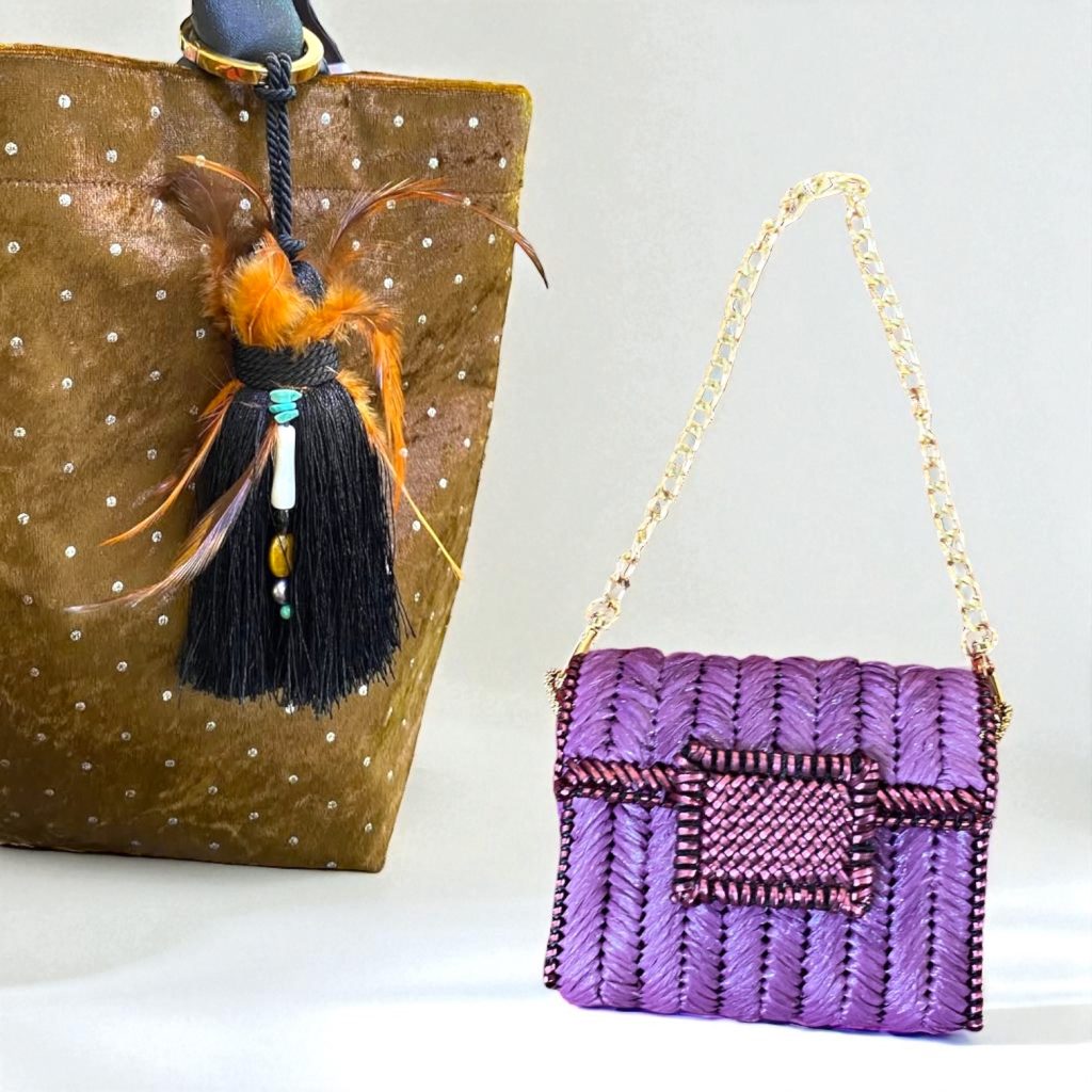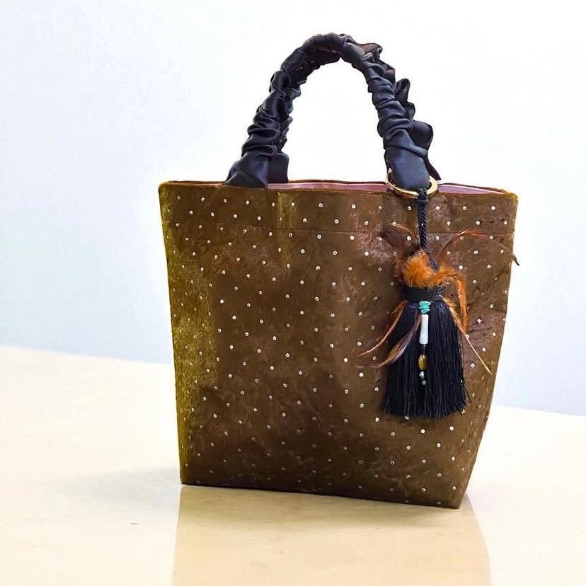 オリジナルのブラウンバッグにmaryuのタッセルを合わせることで、落ち着きのある色合いに軽やかな動きと遊び心が加わります。