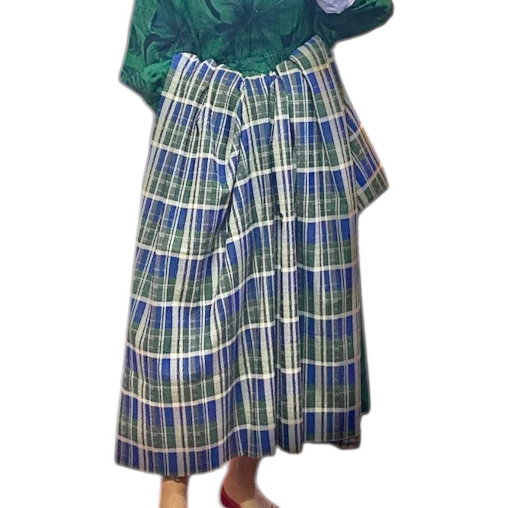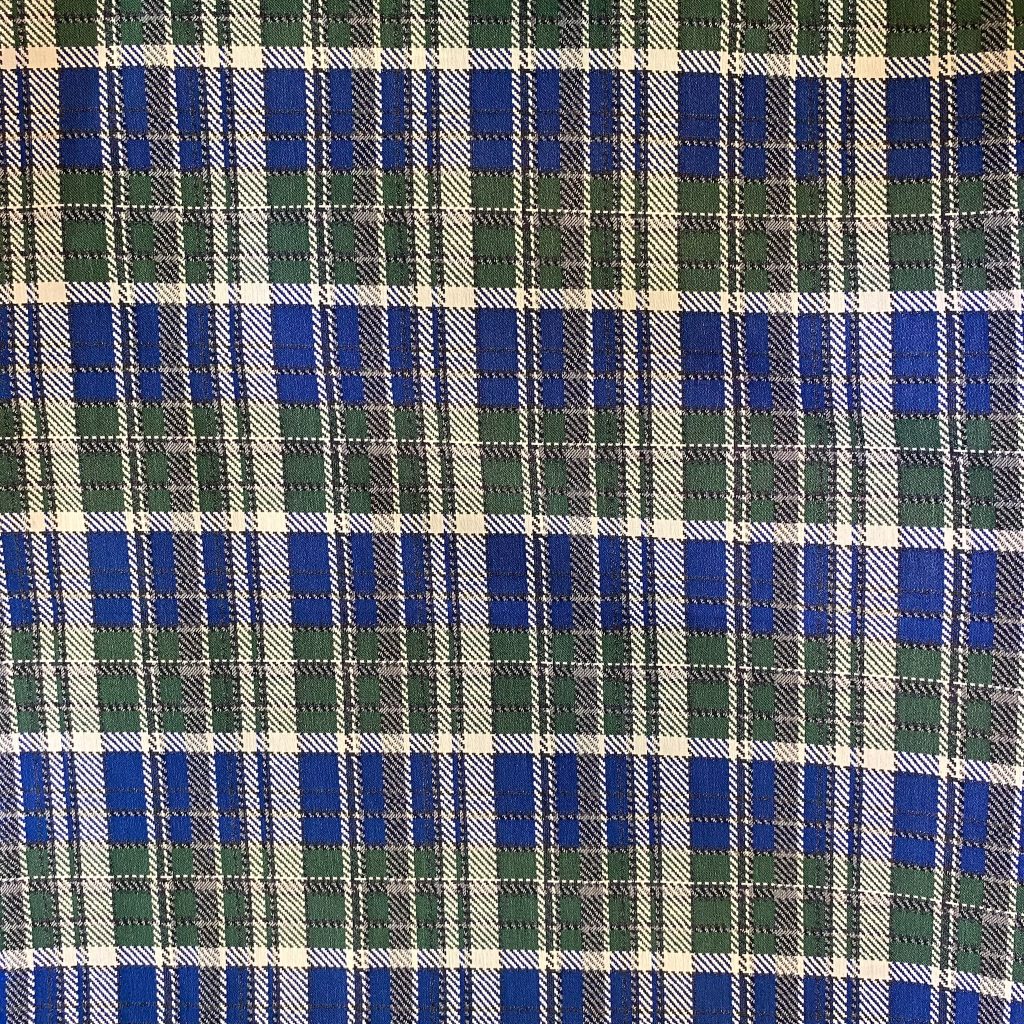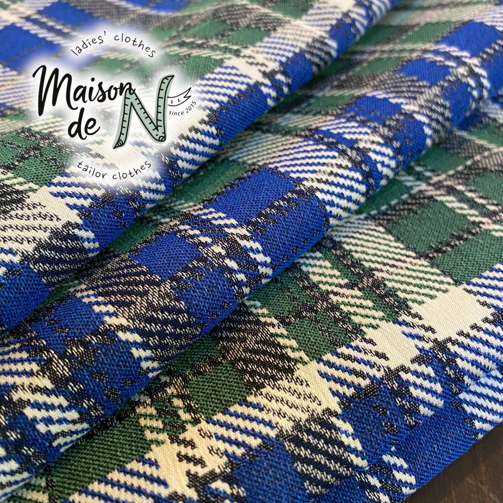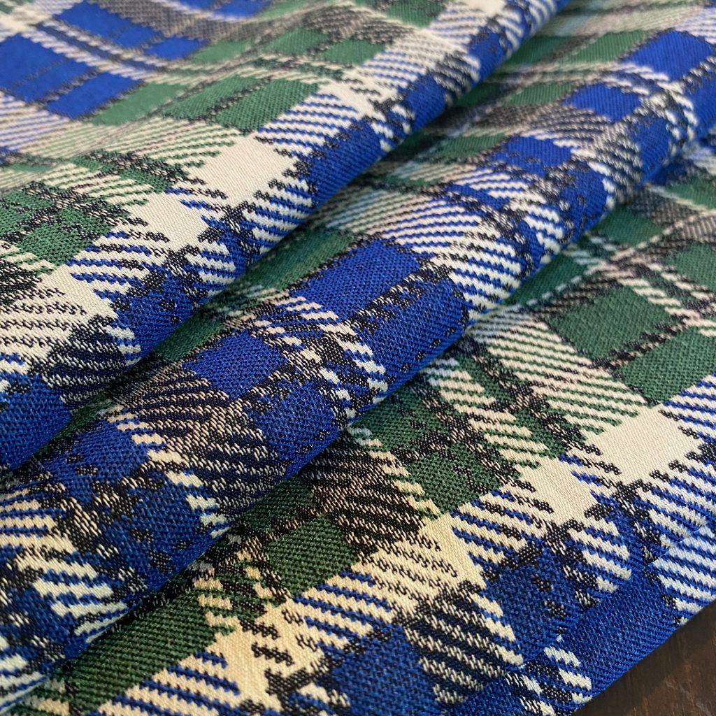 ブルーとグリーンを基調としたチェック柄が、いつもの装いにさりげなくリズムをくれます。