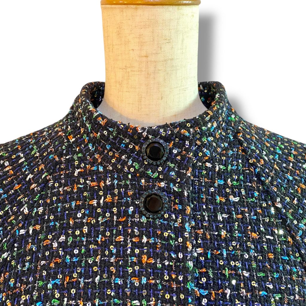 見た目の軽やかさとは裏腹に、しっかりとしたツイードの質感が心地よく、「羽織るだけでスタイルが決まる」頼もしさがあります。