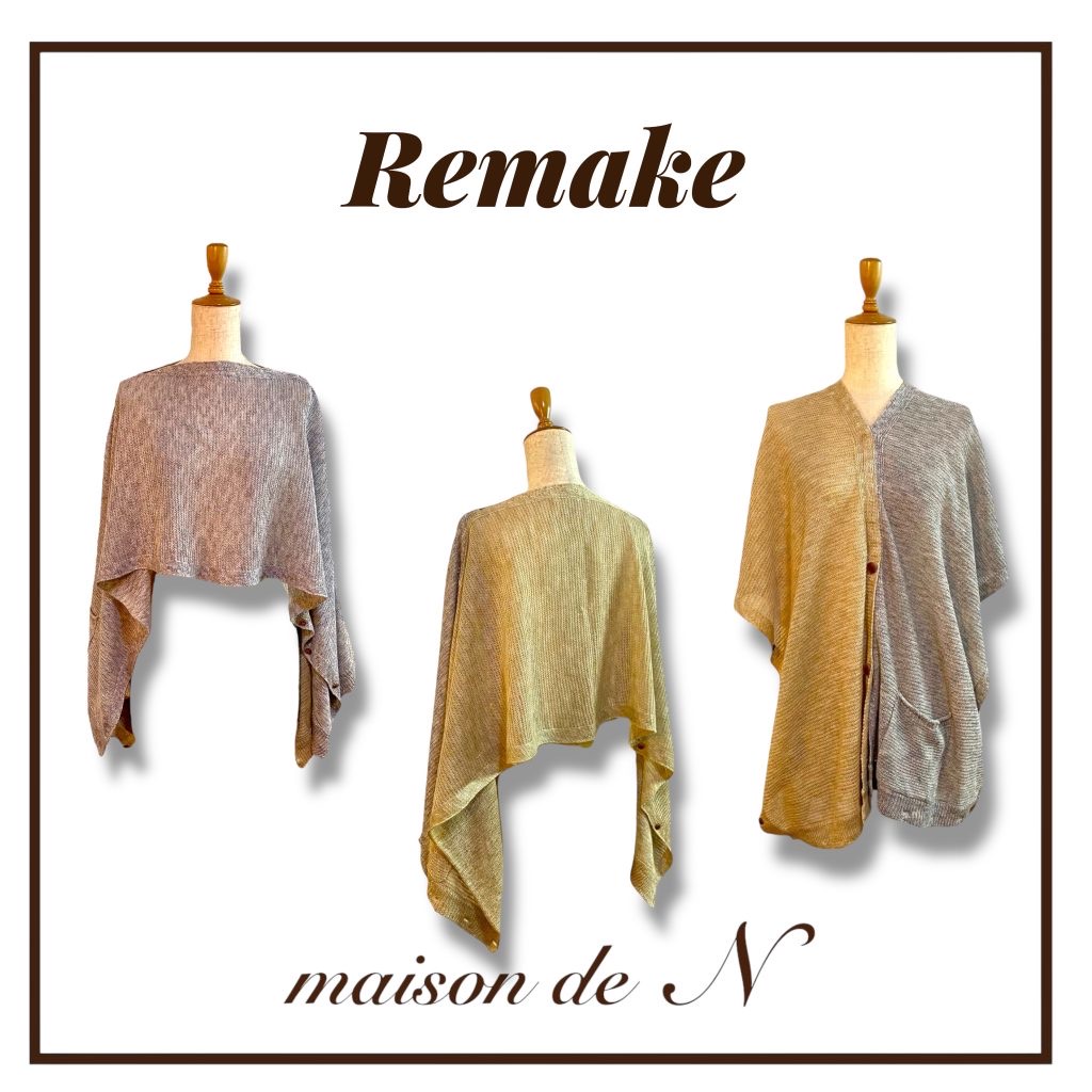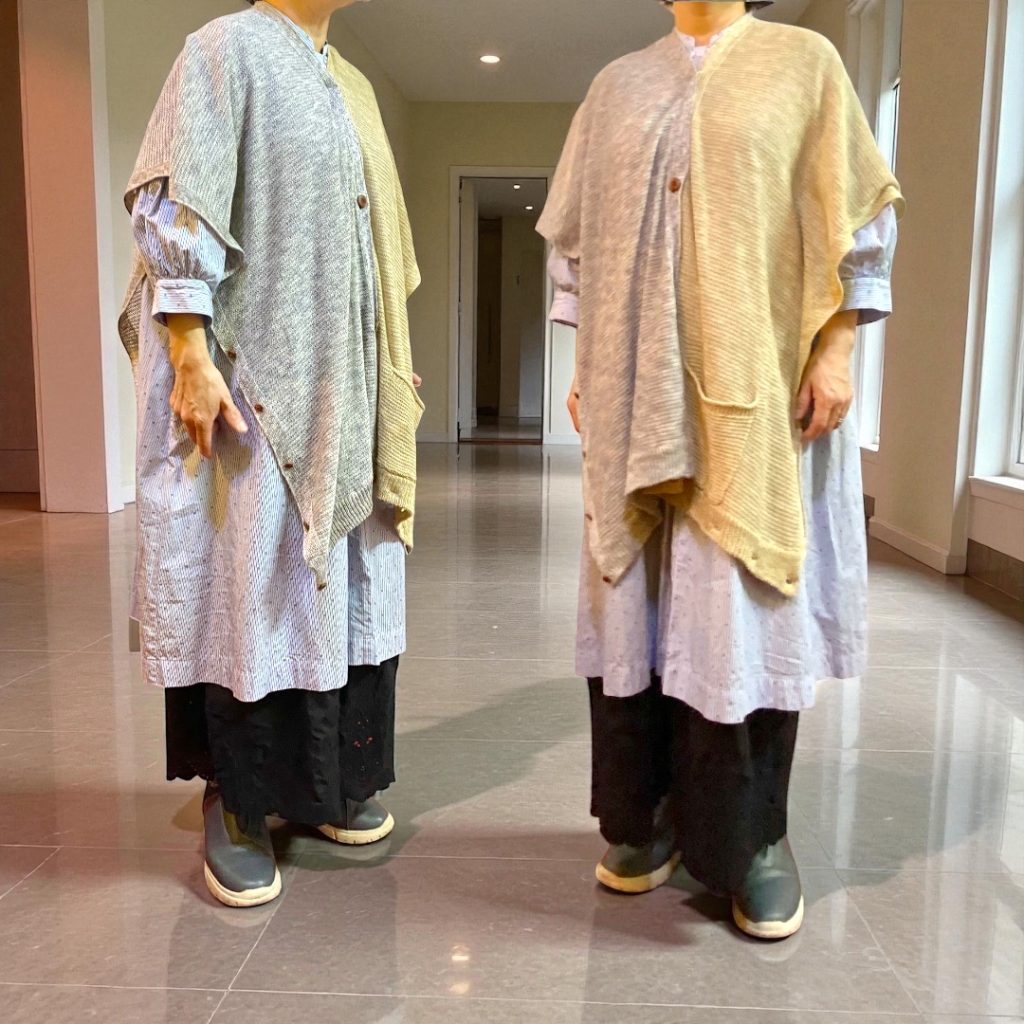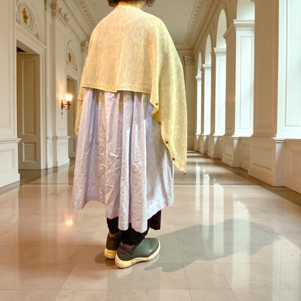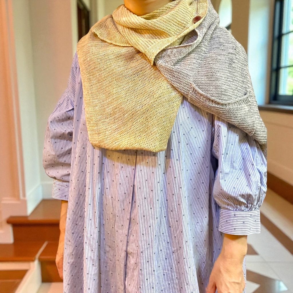 ゴールドとシルバー、それぞれ大切にされていたニットストールを一枚に重ね、新しいポンチョとして仕立てました。