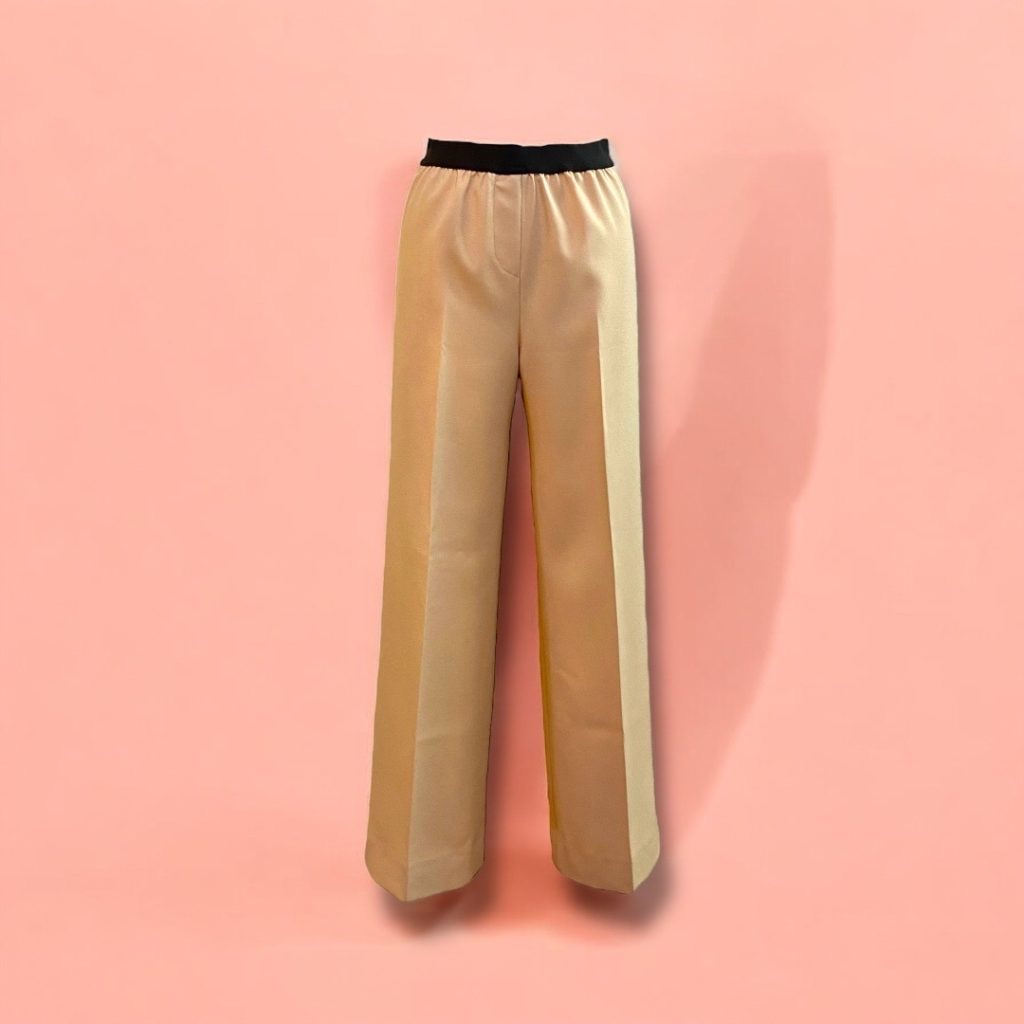 長崎浜屋のセミオーダー会で、ワイドゴムパンツをマロンベージュのお色でご注文いただきました。