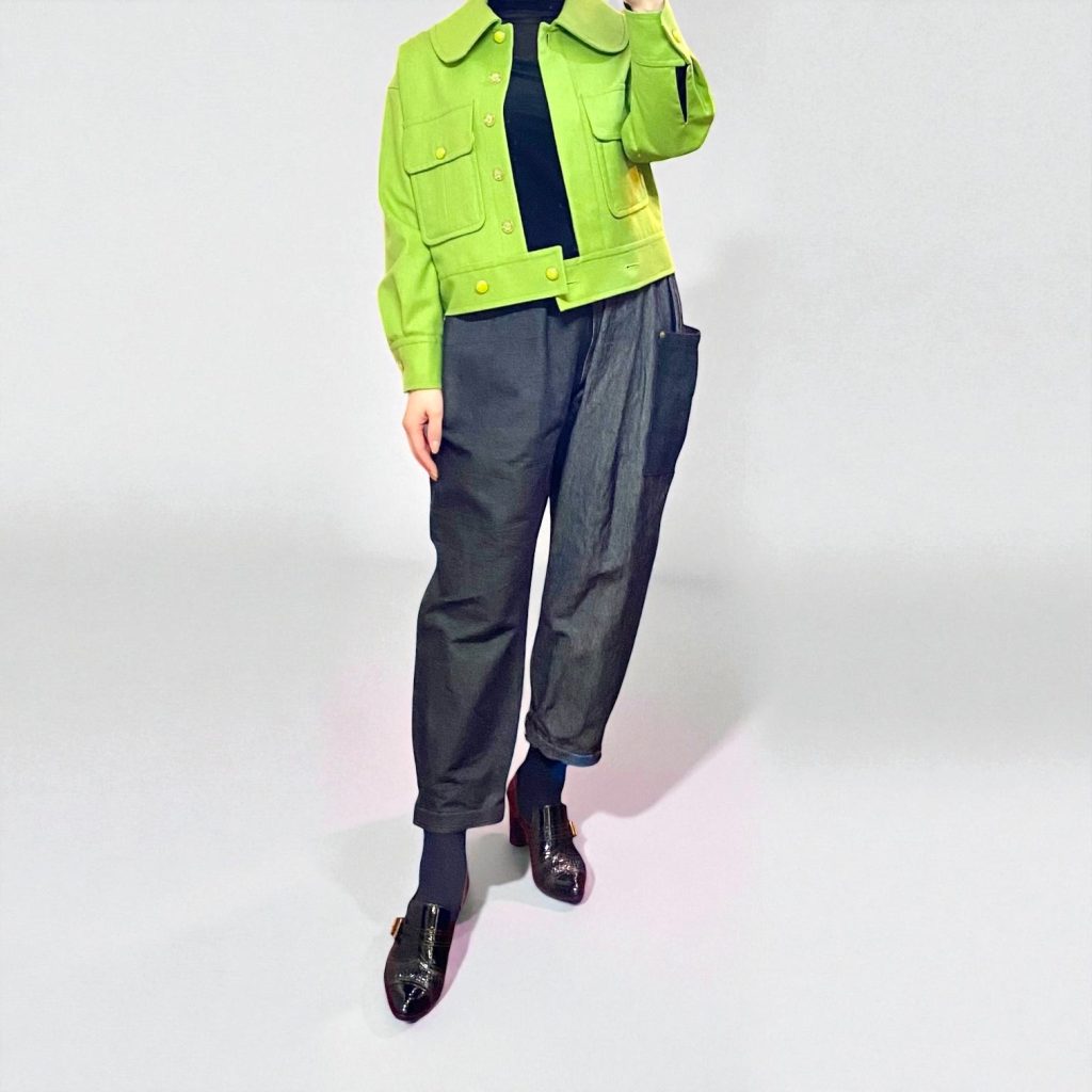 強めの色×デザインのあるデニム、このバランスが本当に素敵。