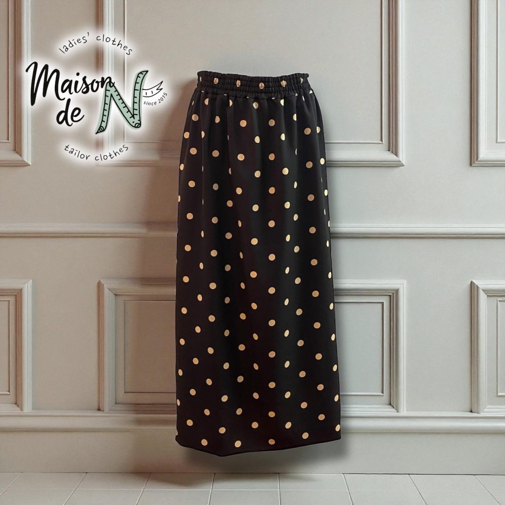 セミオーダーでご依頼いただいていた水玉のタイトゴムスカートが仕上がりました。