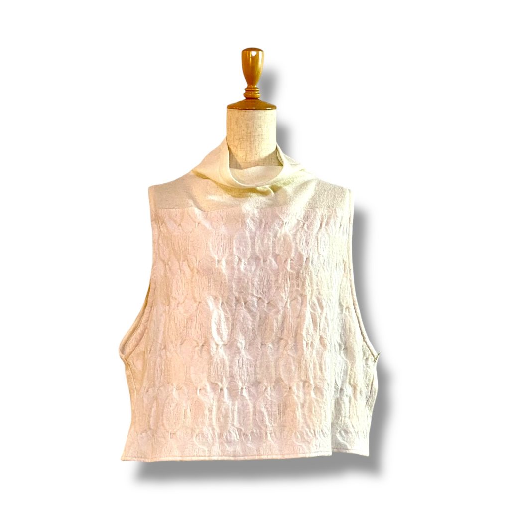 タートルや長袖カットソーを重ねてもすっきり見え、季節を選ばず長く楽しめるトップスです。