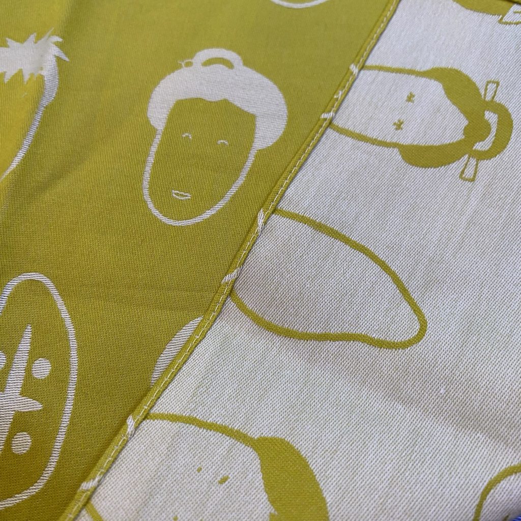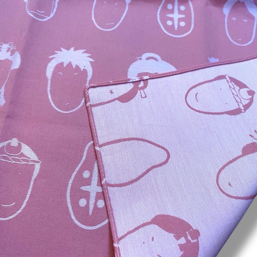 まるで小さな布のアートのような可愛らしさと、播州織ならではの丈夫さと美しさがひとつになった一枚。