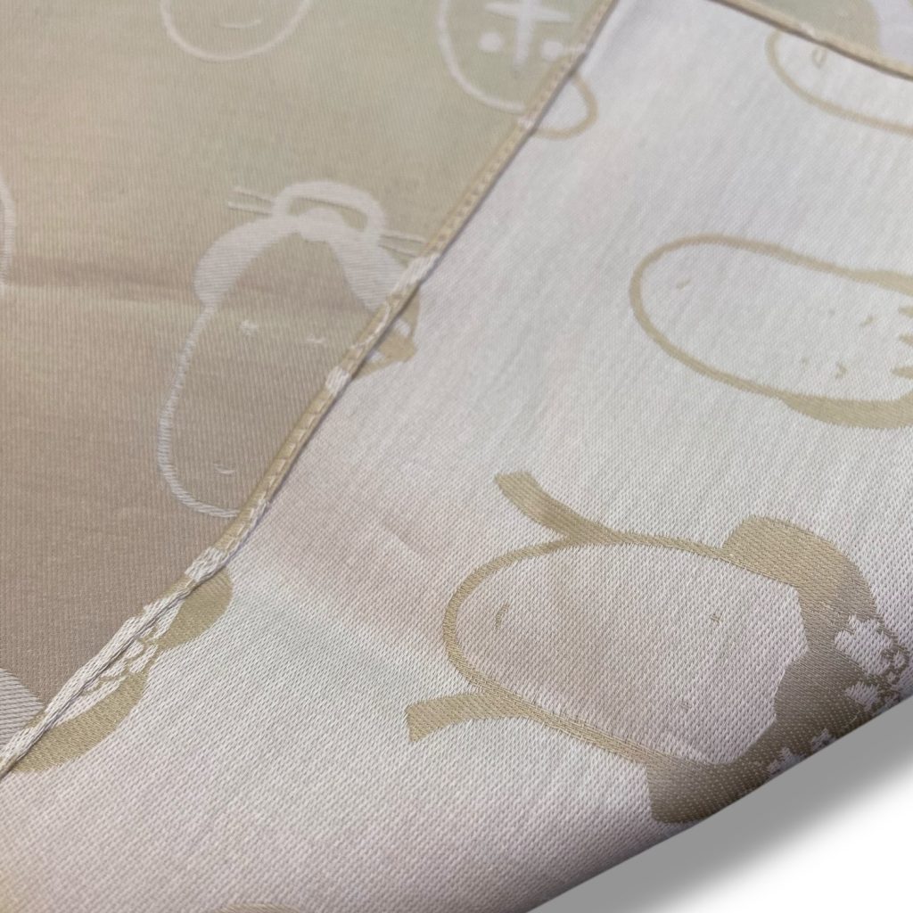 表も裏も均一に美しいのは、織りで描かれているからこその魅力で、手に取ると“布がそのまま絵を描いている”ような温度を感じます。