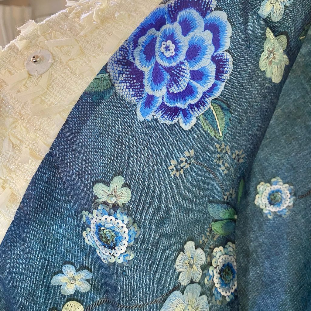 裏地には、鮮やかなブルーの花柄を合わせました。