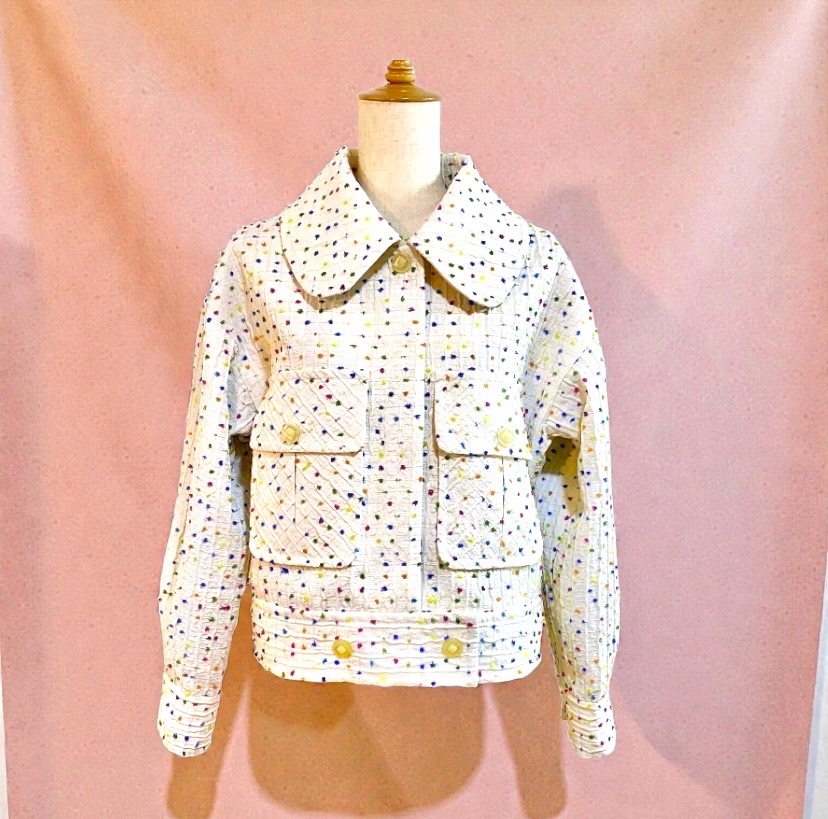 カラフルなドットが織り込まれたツイードの表情が、ほんのり可愛らしさを残しつつ、色の深みや素材感がきちんと大人っぽさも感じさせてくれます。