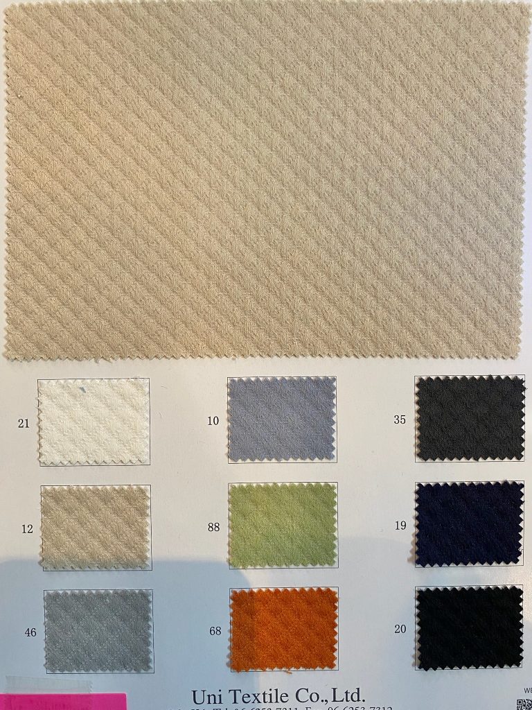 新作の生地と、私自身がずっと気に入っている生地の新しい色が出ていたので、サンプル帳が届きました。