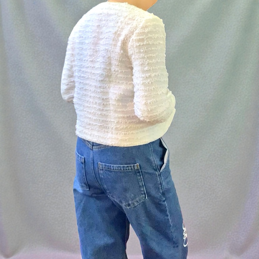 セミオーダーでお仕立てしたノーカラージャケットを、実際に着用していただきました。