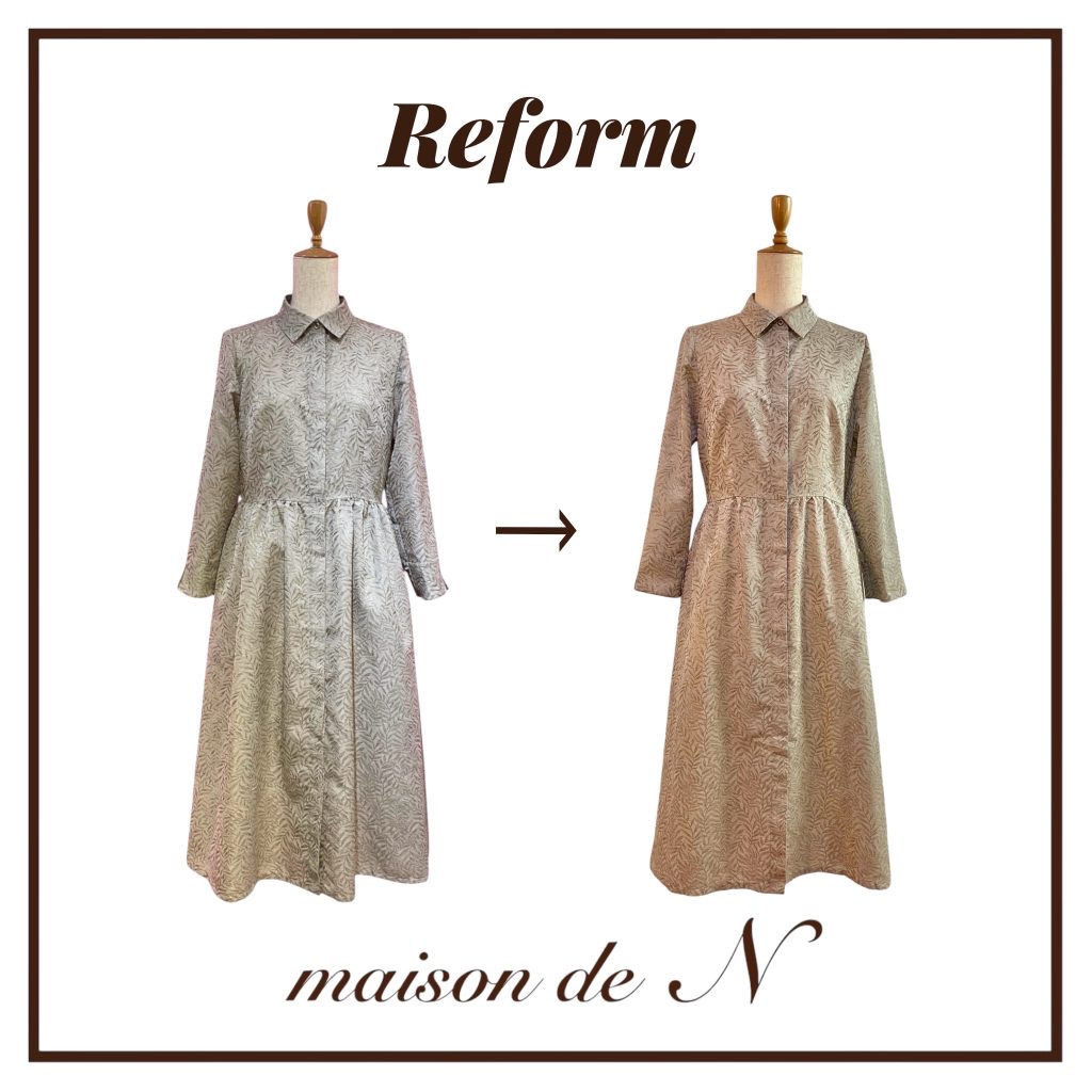 今回は、スカート部分のギャザー分量を減らすリフォームを行いました。