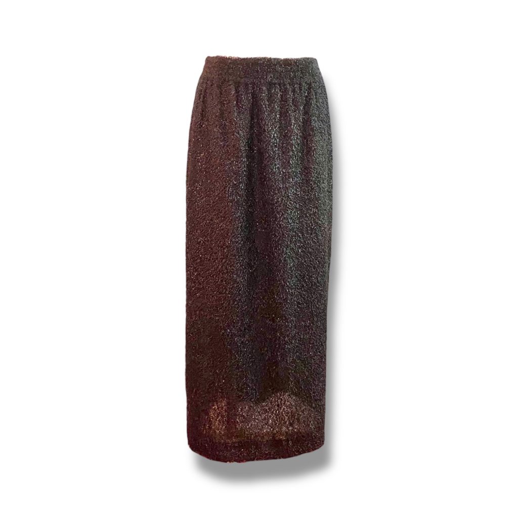 今回仕立てたのは、フリンジ状にカットされた糸が表面に現れる、カットジャガード素材のゴム仕様タイトスカートです。
