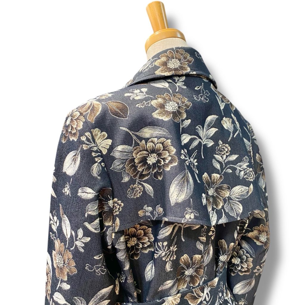 その普遍的なデザインを、他ではなかなか見ない花柄で仕立てることで、今だけで終わらない一着になりました。