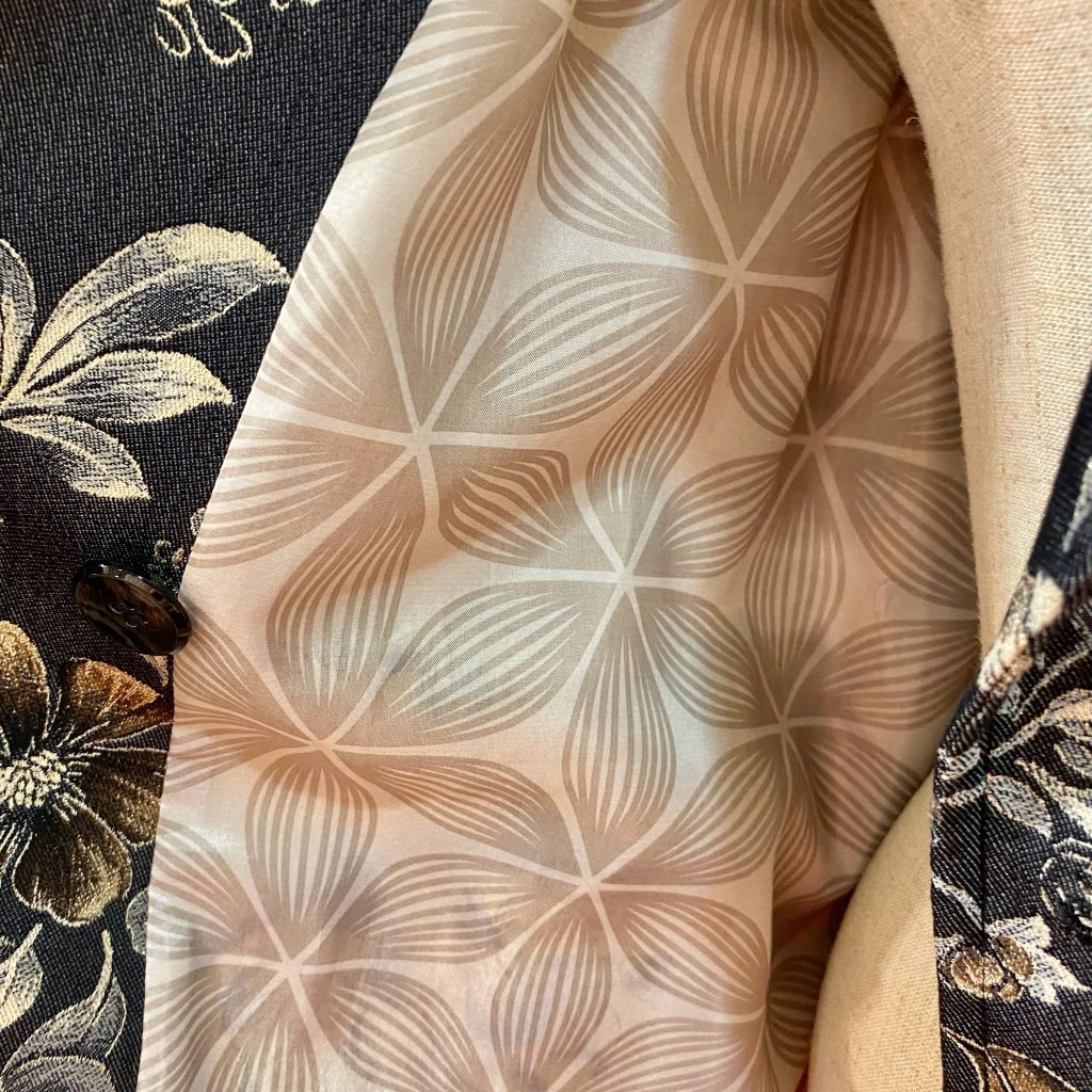 裏地には、柔らかなベージュをベースにした花柄を合わせました。