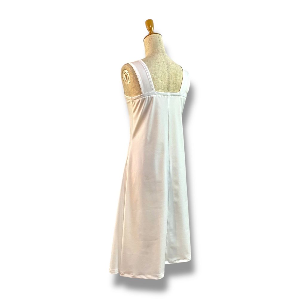 こちらのインナーワンピースは、生地に少し厚みがありますが、着ていると重さや暑さは気にならず、UV遮蔽、接触冷感、通気性、速乾性といった機能をしっかり備えたポリエステル素材です。