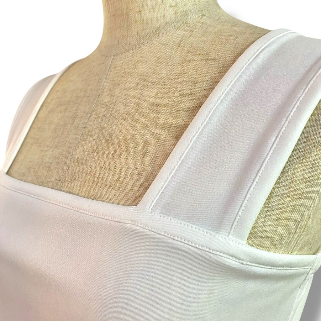 ストラップは少し幅を持たせ、脇下から身頃に沿うような作りにしているので、ホールド感があり、下着が見えにくいのもポイントです。