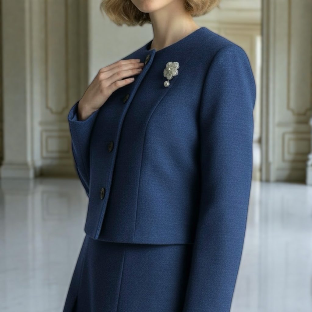ノーカラージャケットやスカートに、さりげなく添えるだけで装いが整うブローチは、ひとつ持っていると本当に心強い存在です。