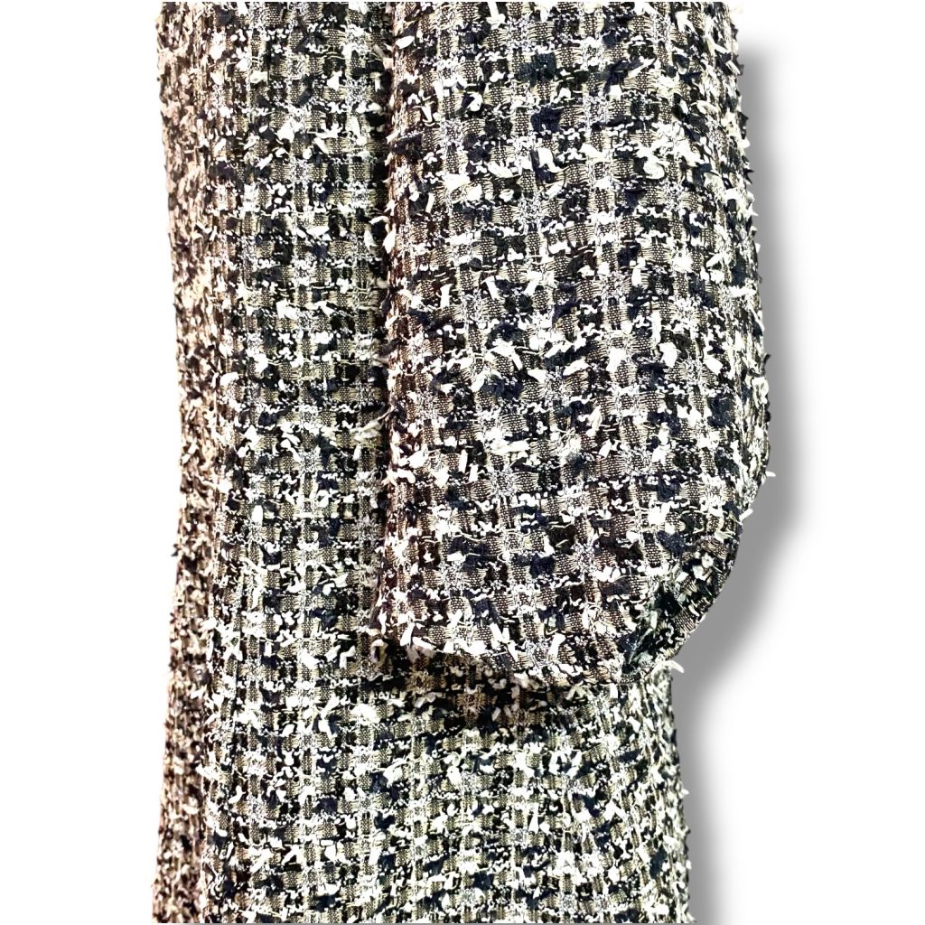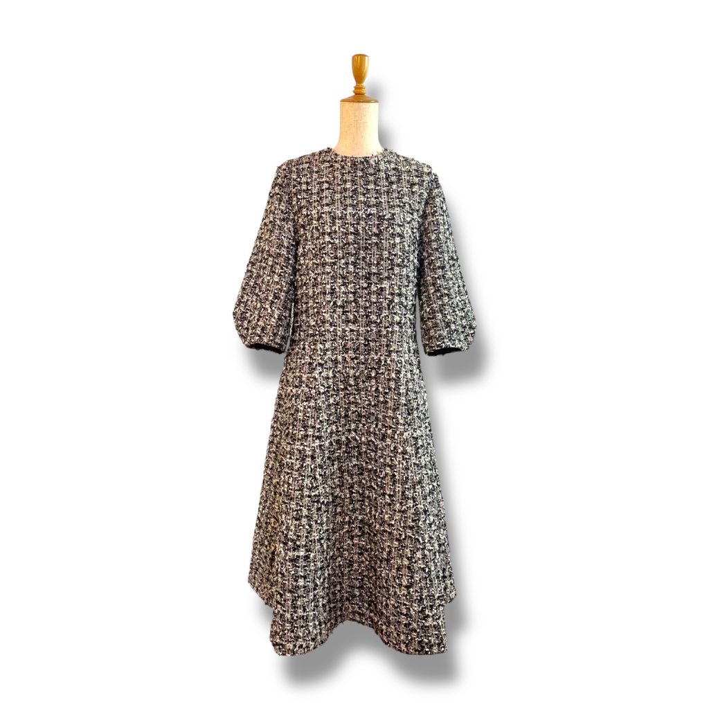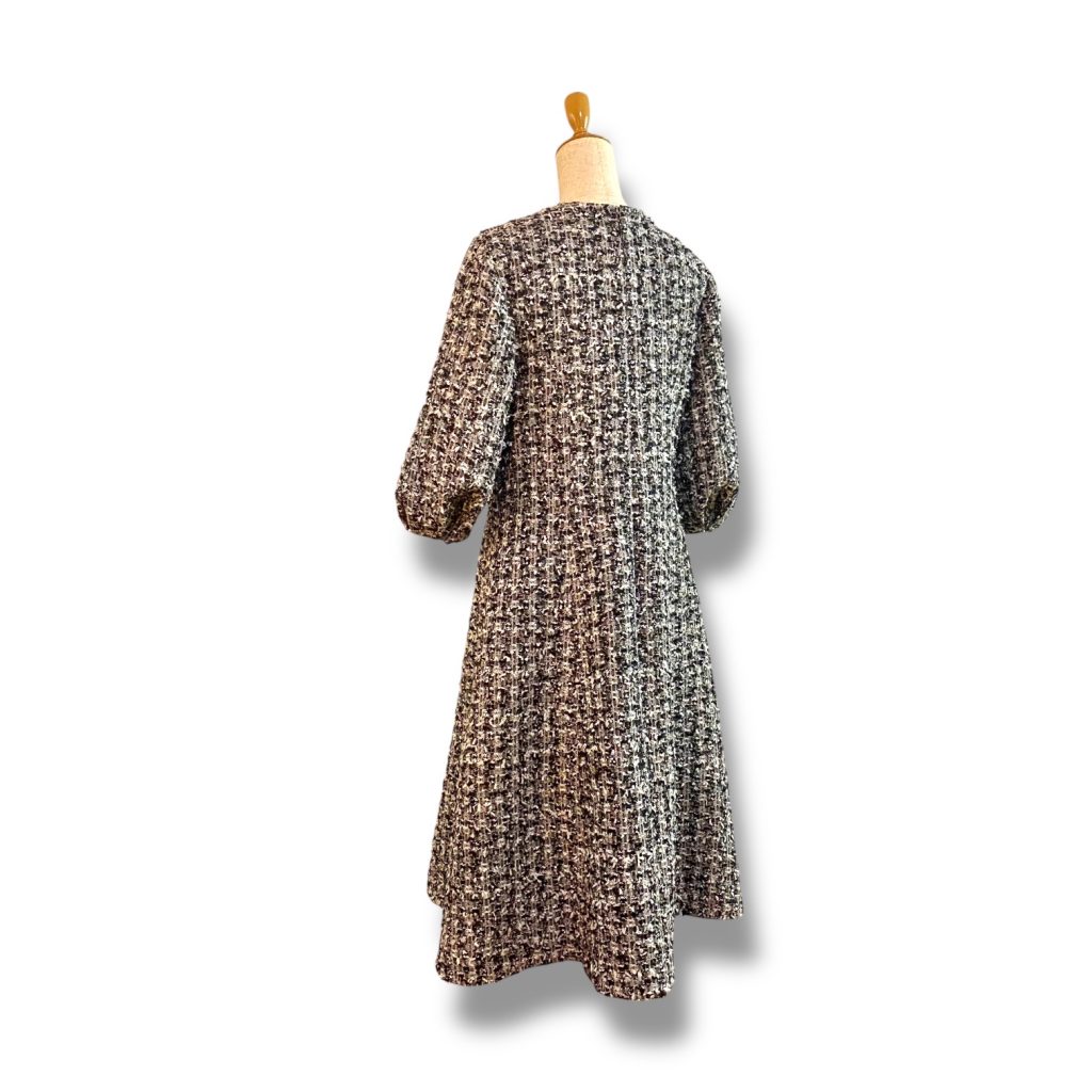 今回はあえて、装飾は加えず、ツイードそのものの表情を楽しむ、潔い仕立てに。