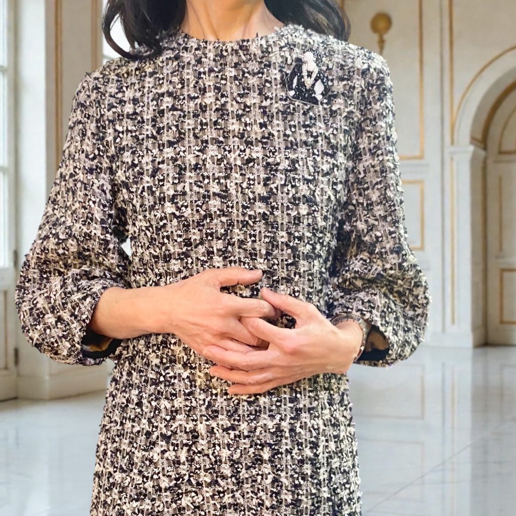 ツイードの奥行きある表情が、その方の持つ柔らかさと品に重なり、華やかさがありながらも決して派手にならない。