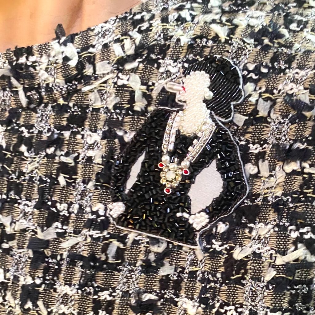 シャネルの横顔を思わせる、繊細なビーズワークのブローチ。