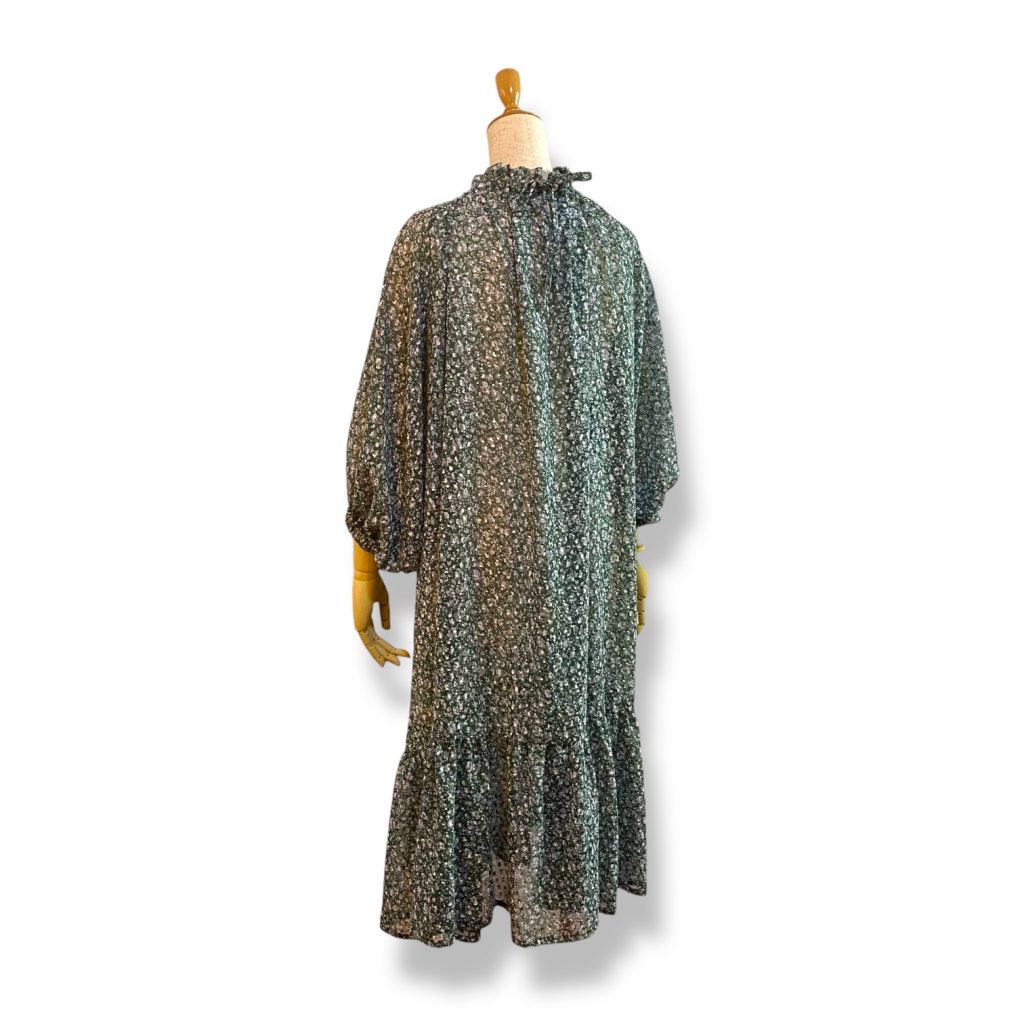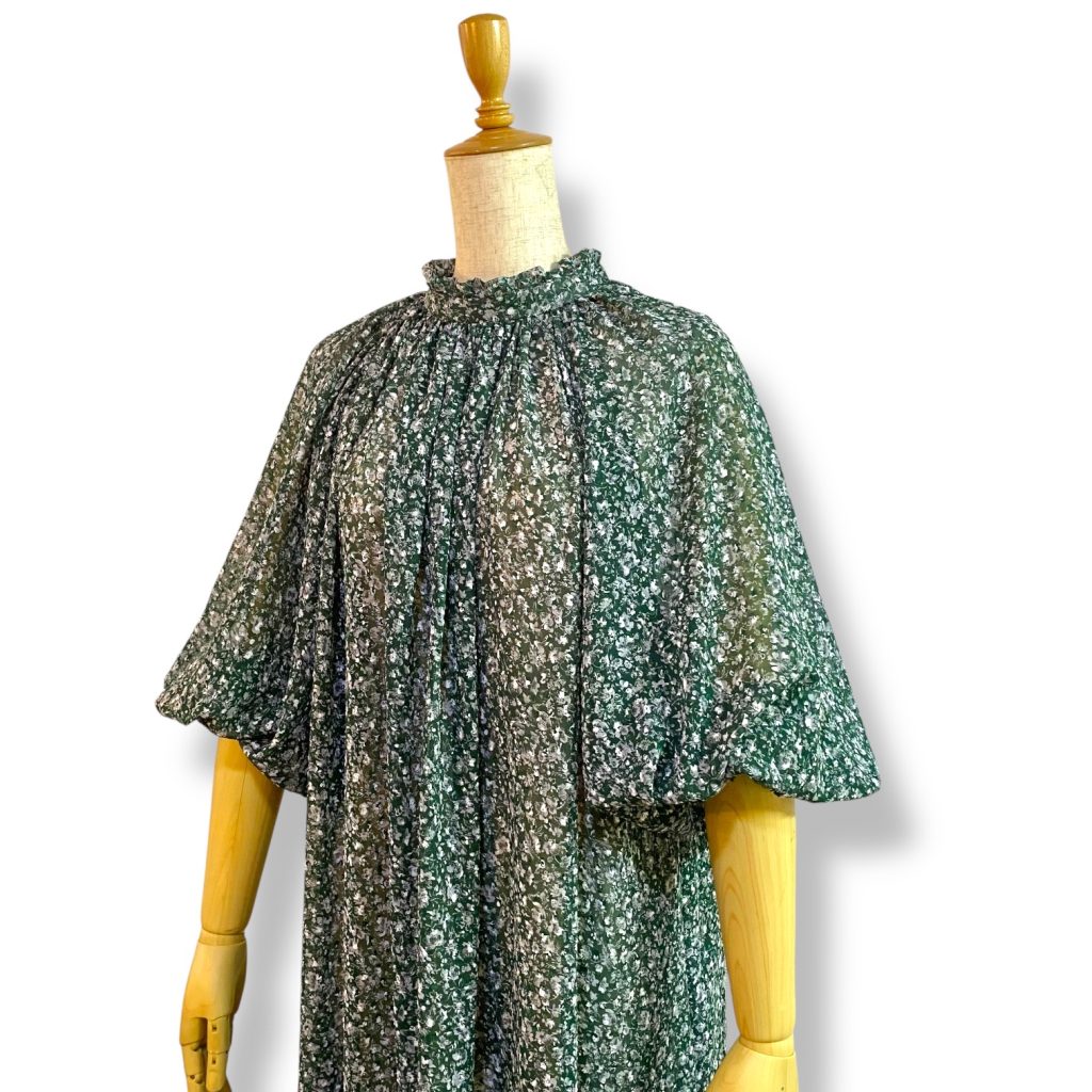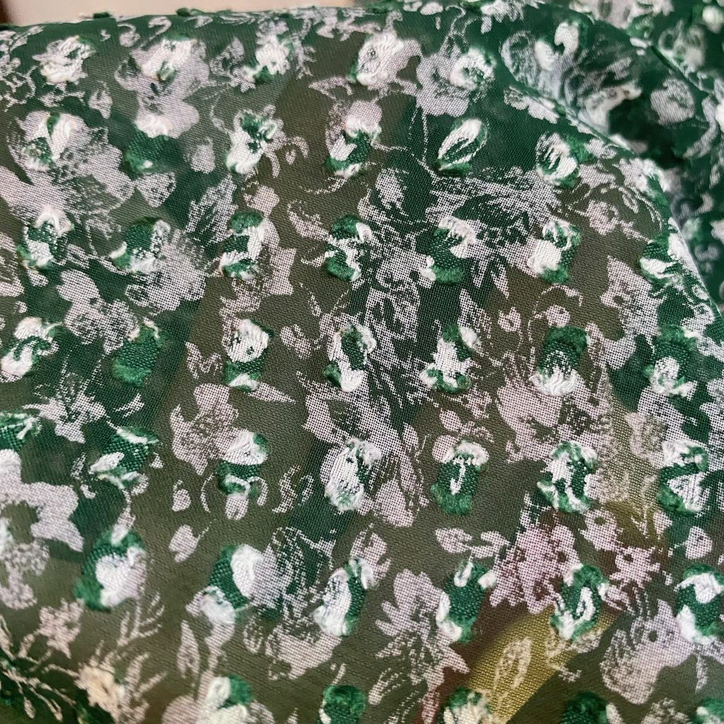 そして生地は、グリーンベースに、白の小さな小花プリント。