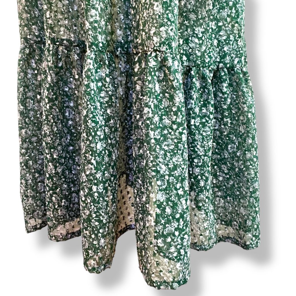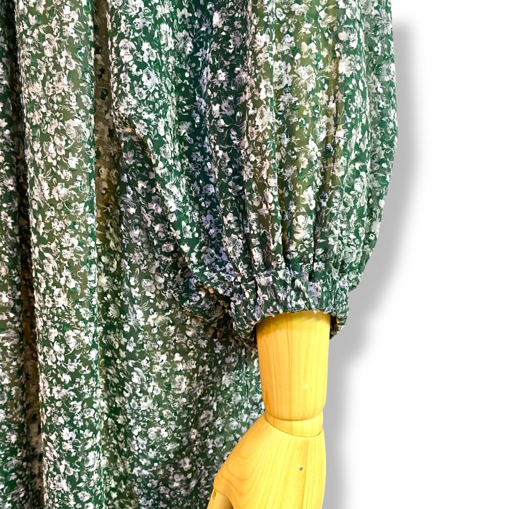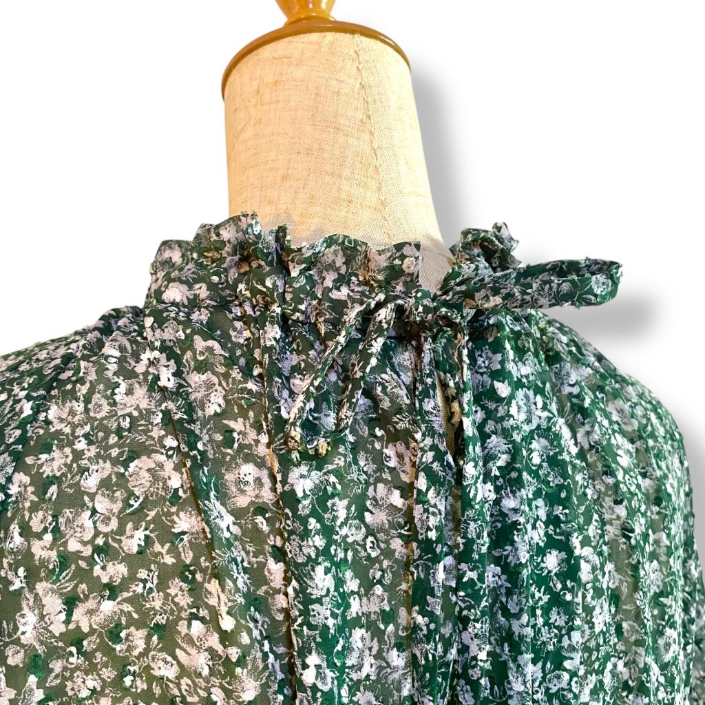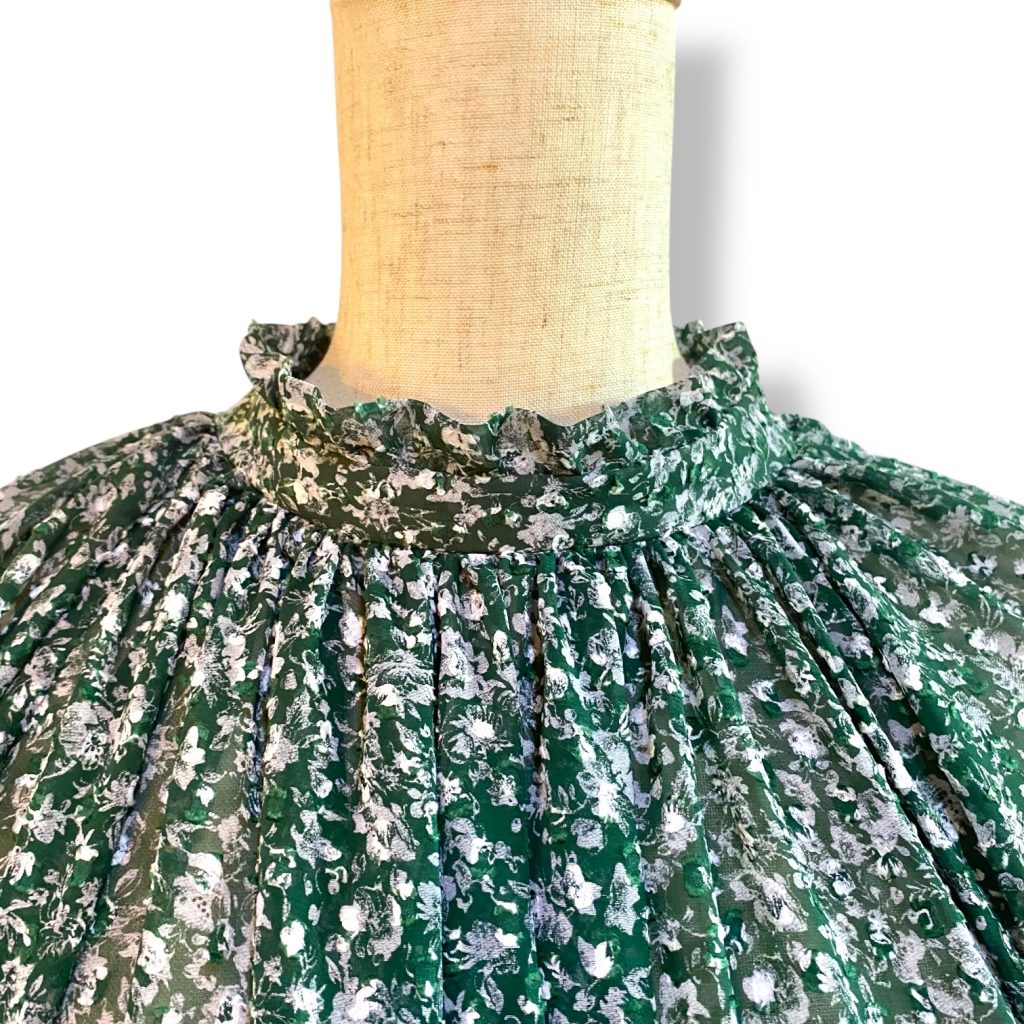 そして生地は、グリーンベースに、白の小さな小花プリント。