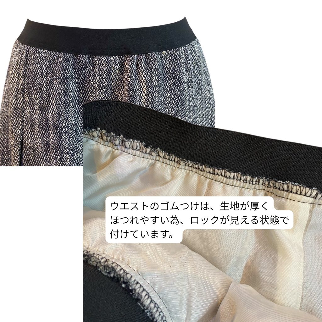 プリーツの分量を丁寧に整えながら、ウエストまわりと腰まわりに程よいゆとりを持たせました。