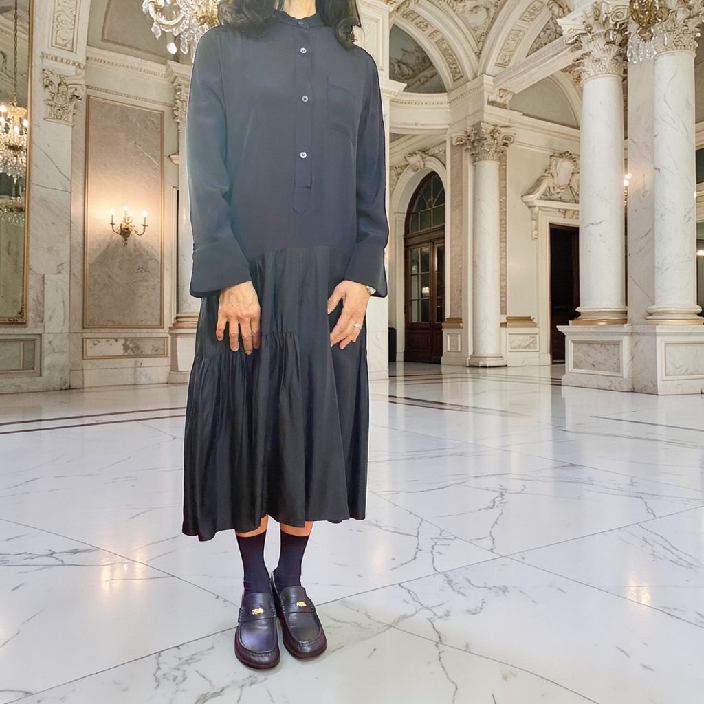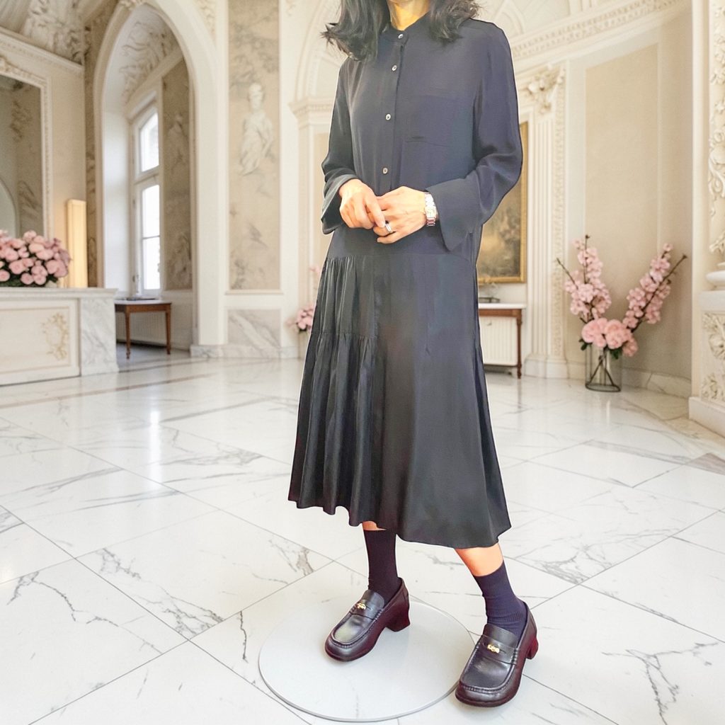 同じワンピースなのに、こんなに印象が変わるのかと思うくらい、ぐっと洗練された雰囲気になりました。