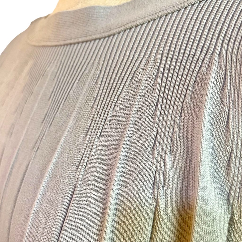 細かな縦の編みがすっと並び、身体に張り付かず、ふんわりと空気を含むようなシルエット。