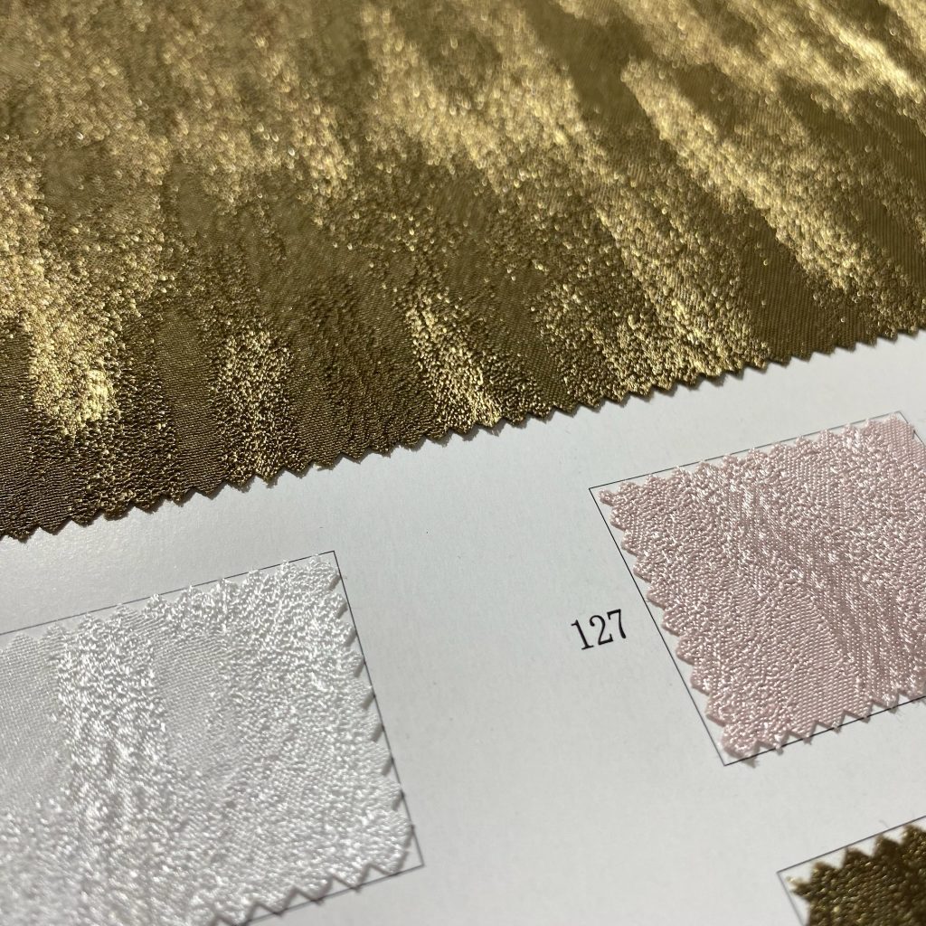 軽やかなプリント生地、繊細な表情のあるジャカード、小さな刺繍が入った素材、そして上品な光沢のある生地など。