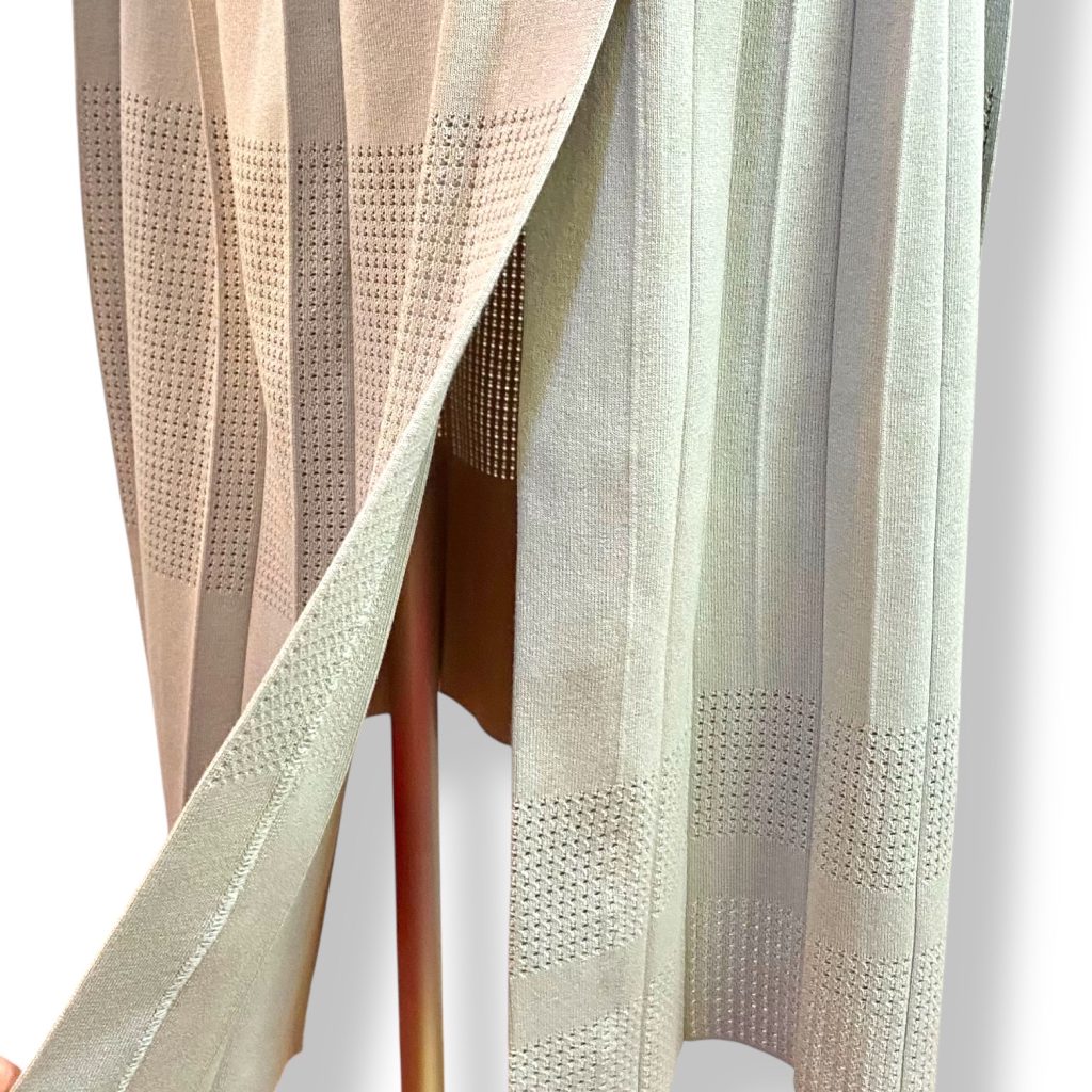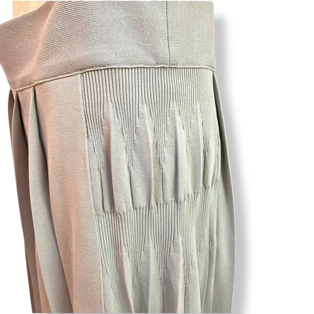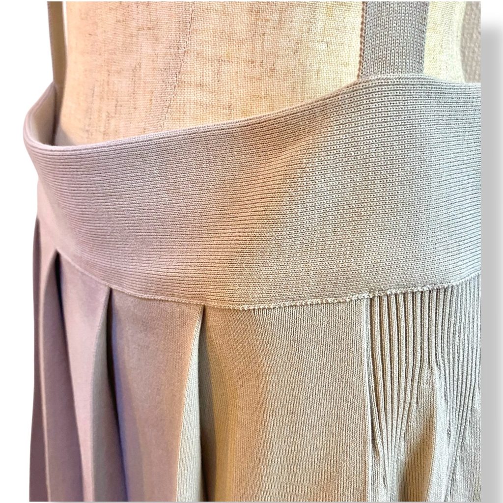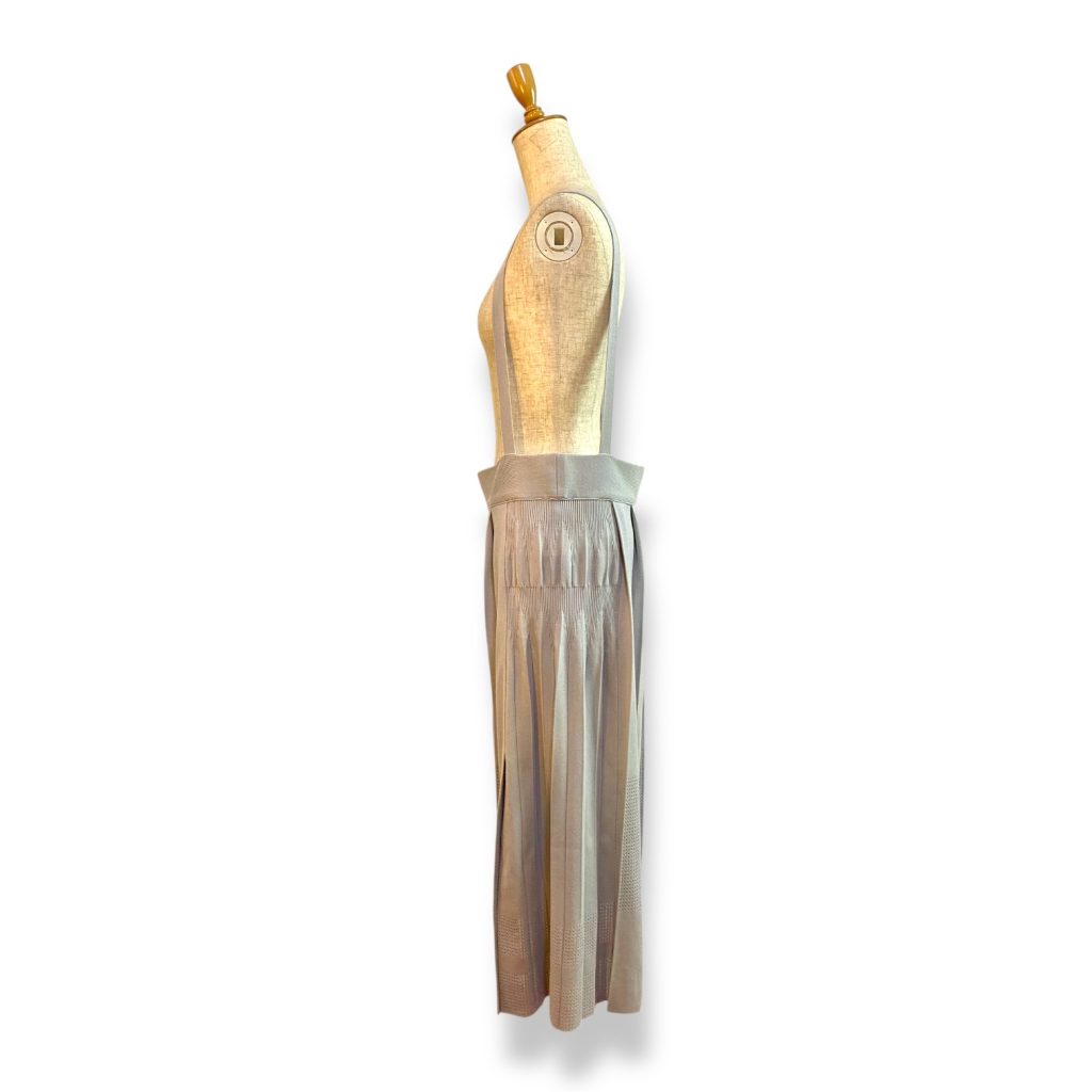 さらにサイドのプリーツは少し折りの表情が変えてあり、歩くたびに揺れ方が変わるのも美しいポイント。