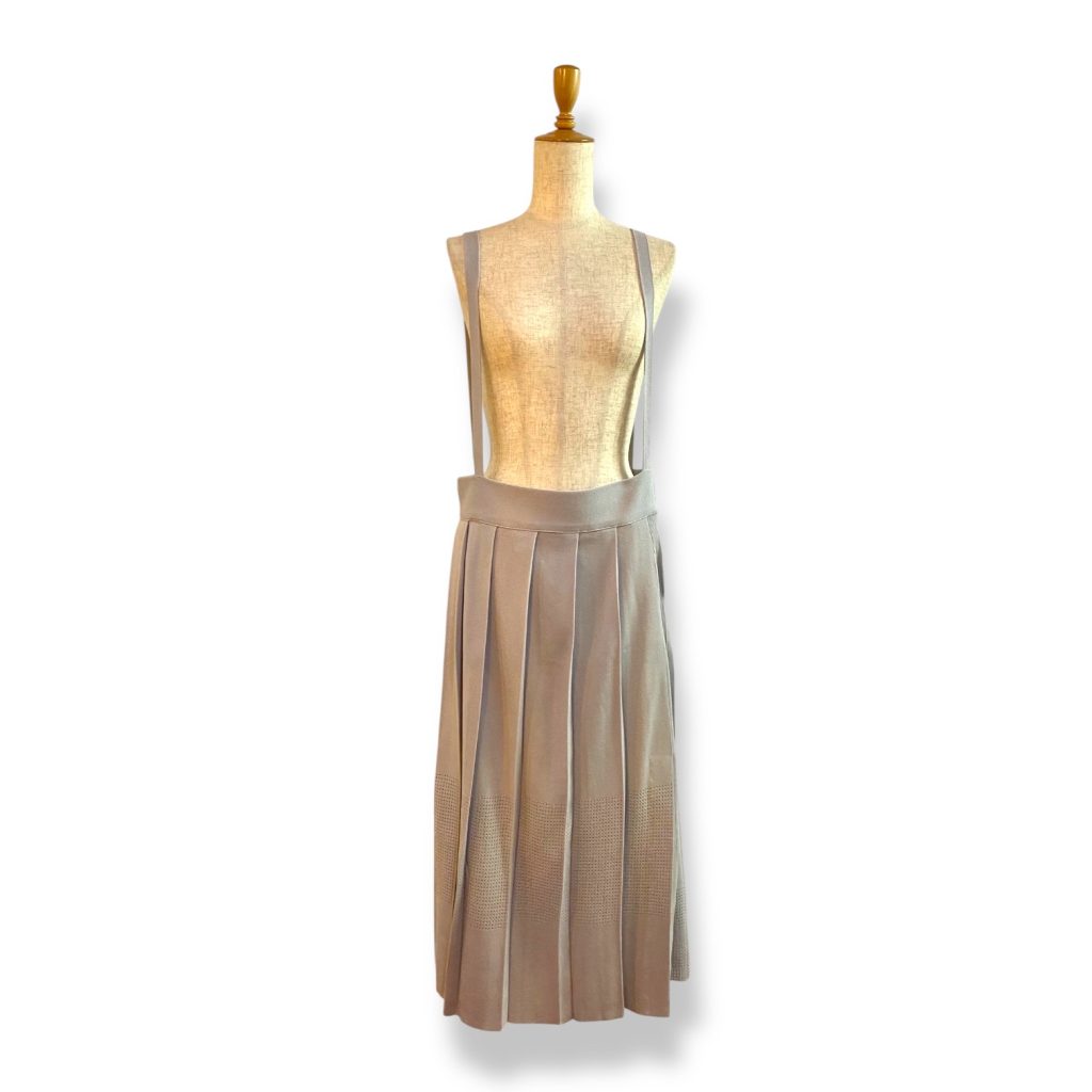 サスペンダー付きのプリーツニットスカートです。