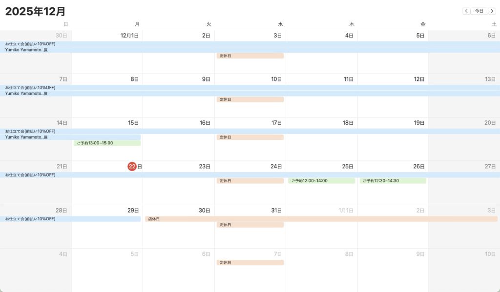前日の21時までに、最新の日程を各SNSに掲載しますので、そちらをご確認のうえご来店をお願い致します。