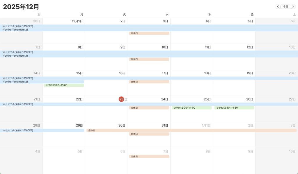 前日の21時までに、最新の日程を各SNSに掲載しますので、そちらをご確認のうえご来店をお願い致します。